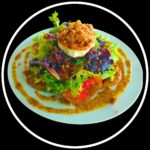 Salmón, Mango, Aguacate, Sésamo Negro, Ahumado con Virutas de Barrica de Jack Daniels