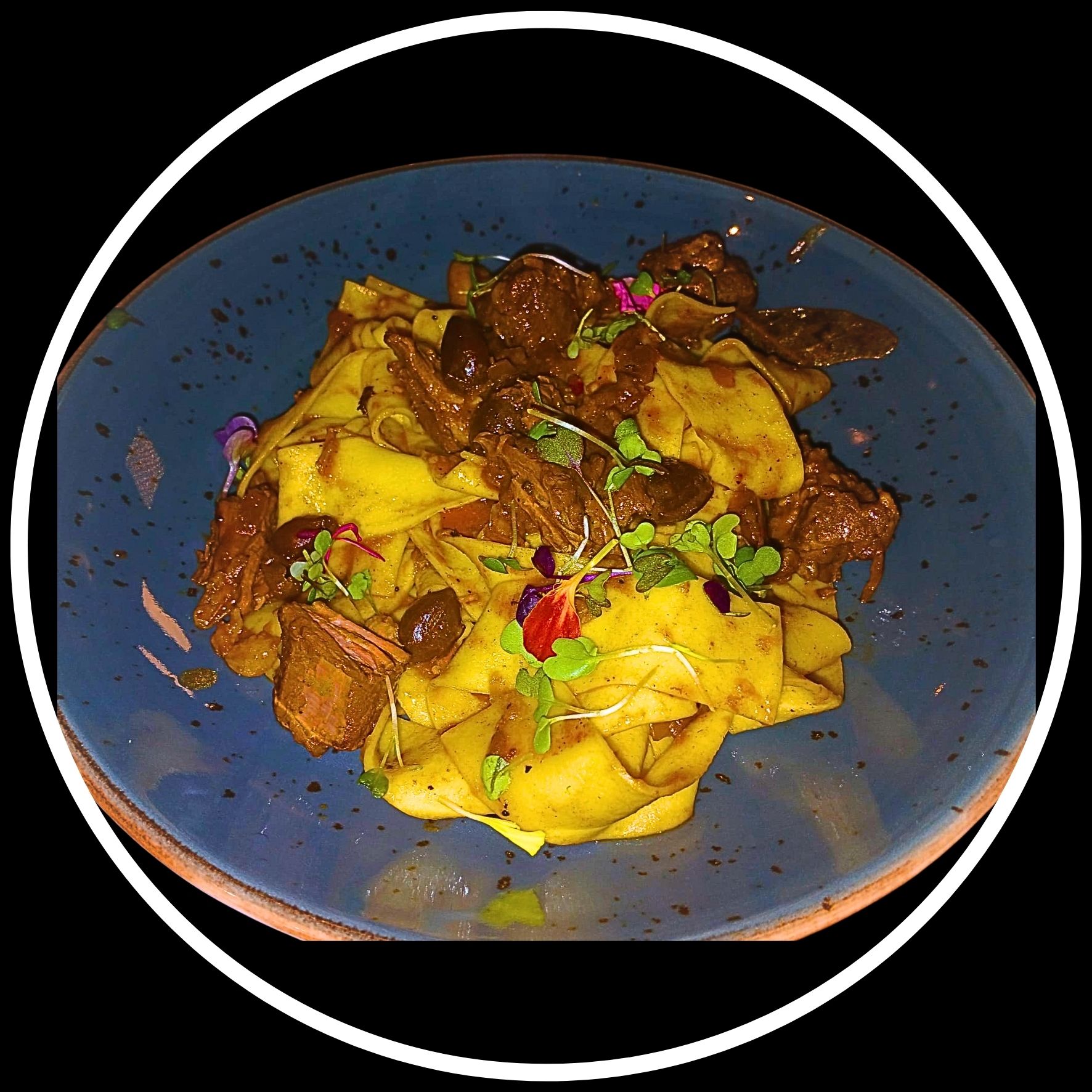 Ragout tradicional de ternera y cerdo, guisada con verduras y vino tinto